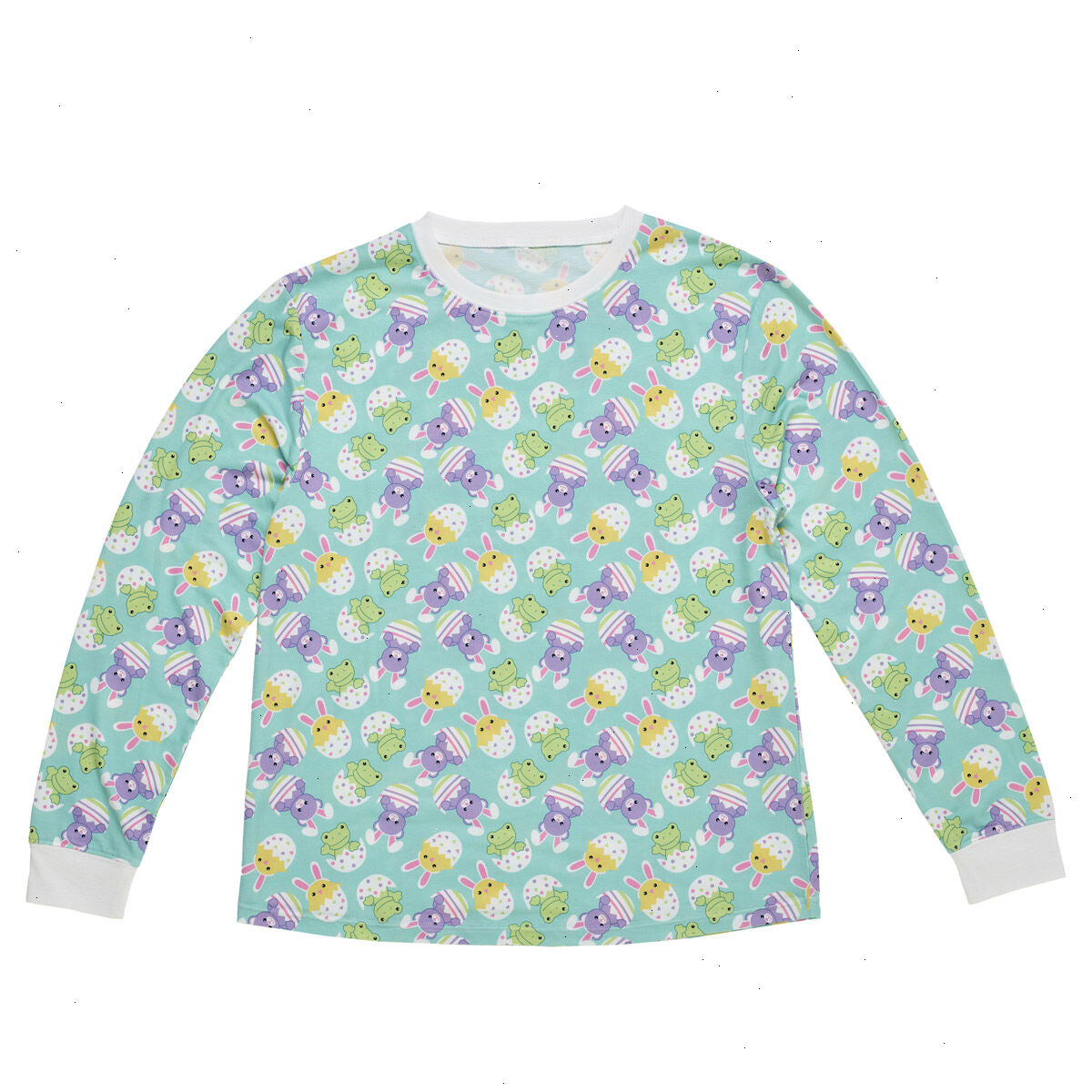Hunting for the best Easter PJs this spring? Hop into bed and snuggle up to the sweetest of springtime dreams in this comfy PJ top. The all-over Easter egg pastel print is perfect for making Easter morning the cutest and coziest it can be. Made from 95% polyester and 5% spandex materials. Adult sizes: S, M, L, XL, 2XL.