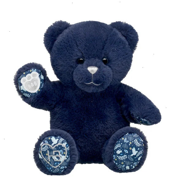 Hanukkah Wishes Bear brings warm hugs for every night of Hanukkah! This dark blue teddy bear has printed paw pads to make a sophisticated gift and décor item.