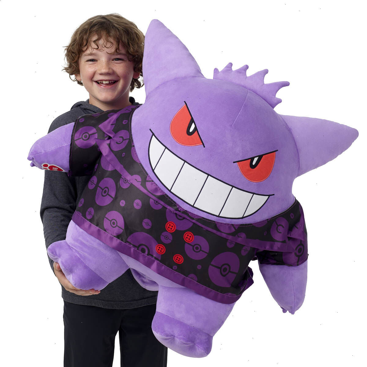 Take your Pokémon lineup to spooky new heights with this Giant-Sized Gengar plush! Known for its big red eyes and toothy grin, this Ghost- and Poison-type Pokémon is now available in a giant size at Build-A-Bear for the first time ever. This Giant Gengar plush bundle includes its oversized coat too. Make moonlit memories with this GIANT Gengar plush and cast huge shadows when you add it to your Pokémon plush lineup.